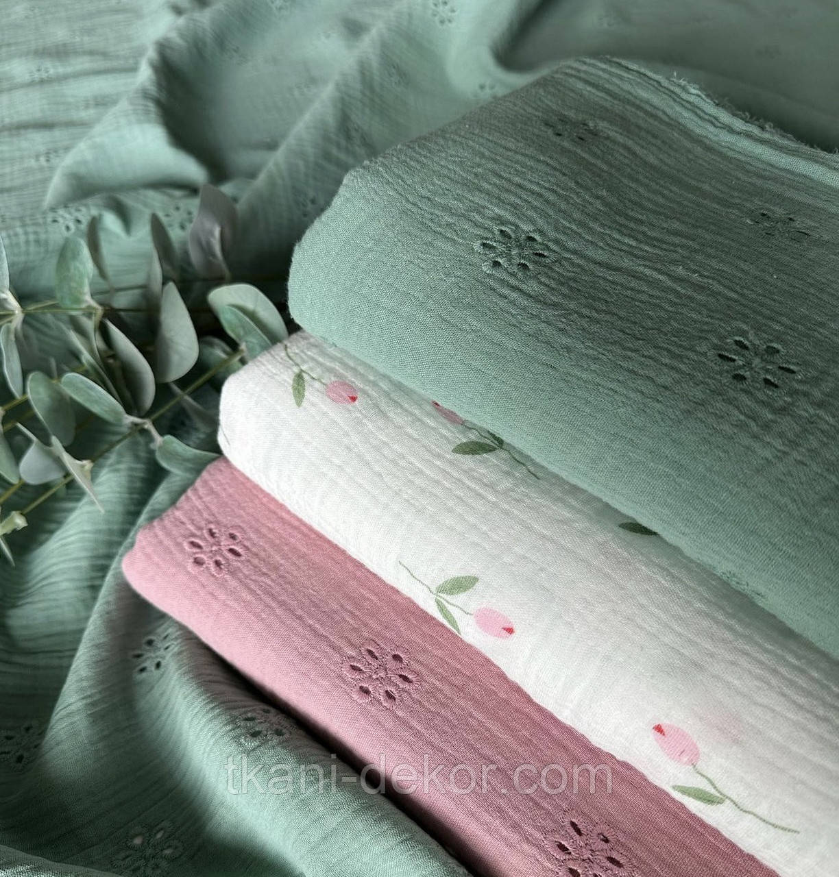 Муслін з прошвою кольору шавліяМуслін з прошвою кольору шавлія